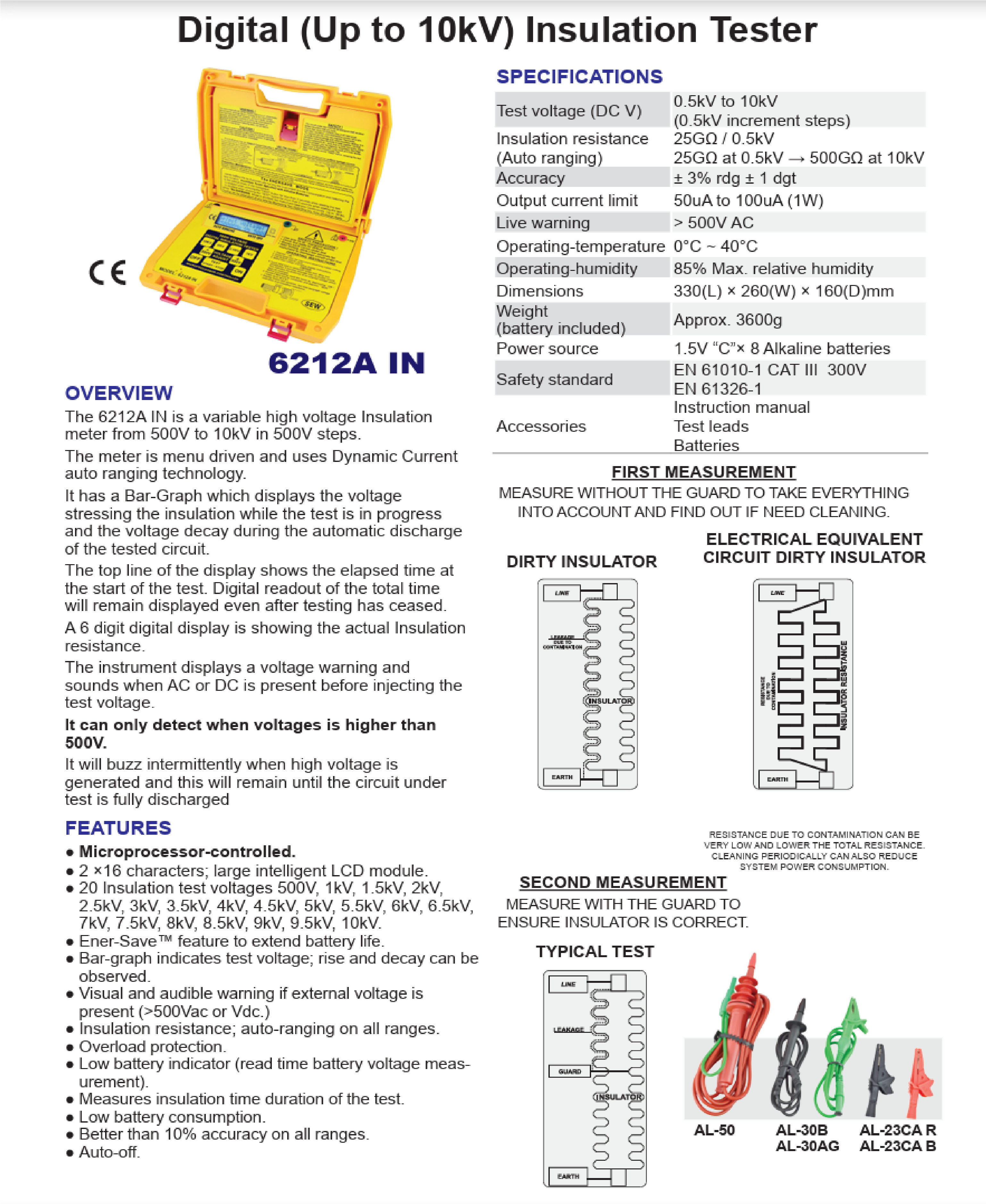 - High Insulation Resistance Measurement: Can measure up to 500GΩ at 10kV.